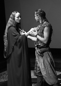 To the cold marble halls of Constantinople palace of Emperor Justinian, where the walls have ears, and people keep silent, where careful words fall like the drops of water, resoundingly splashing under the stone arches, while the silence chokes like thick incense smoke, comes the son of the steppes, a warrior and a poet by the name Imr. His heated words bewitch Princess Zoya. His reminiscences deprive Empress Feodora of tranquility… This is a play about love and jealosy, beautiful and deadly, just like the poisoned wedding tunic. - It seemed impossible that the tragic tranquility, full of romantic dreams, which forms the essence of Gumilyov’s poetry, could be presented on stage. [Director Ivan] Popovski truly has a key to the unstageable, but most beautiful theater texts of the Russian Art Nouveau.