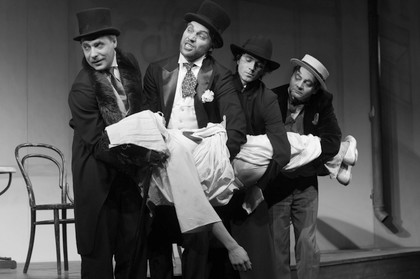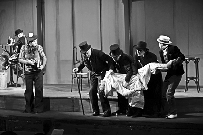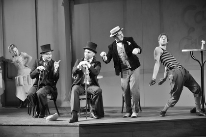 The “tragicomic cheap comedy” and “catastrophe in debut” — as the stage production’s genre was defined by Petr Fomenko — is a story of the four Madwomen who save their lovely Paris from the certain United Bank of Mines and Carriers of Paris, whose founders, the swindler “bankers,” are ready to dig up the whole city for a drop of oil. “The good men — women also — reach good ends…” — while the gutter oligarchs find their end in the Paris “mines,” in the very heart of the city sewers. - Fomenko took the story of how the underclass, headed by the mad old woman, lured the local bourgeois to the sewers… and left them there for good, to save if not the whole France, then at least their own neighbourhood, and transformed this prop play, entangled in its own sagacity, into a very delicate stage production, full of bitterness and artistry, which is a sheer pleasure to watch.