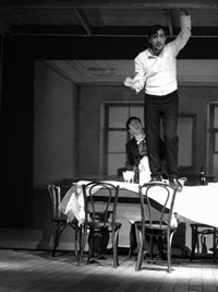 - Мелодраматический сюжет Островского Фоменко поместил где-то между графикой черно-белого кино и лихой театральщиной. Плоские тени на заднике, замирающие в странных, изломанных позах актеры, и тут же — преувеличенные интонации, картинные, оперные мизансцены, нелепые парики на цыганах.