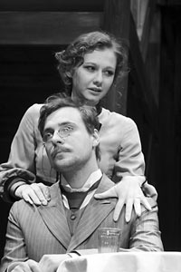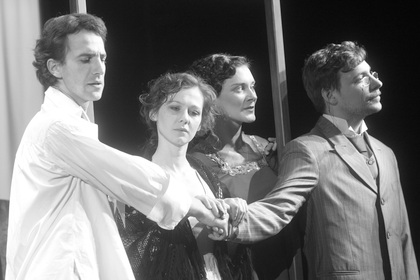 - Мелодраматический сюжет Островского Фоменко поместил где-то между графикой черно-белого кино и лихой театральщиной. Плоские тени на заднике, замирающие в странных, изломанных позах актеры, и тут же — преувеличенные интонации, картинные, оперные мизансцены, нелепые парики на цыганах.