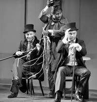 - Литературную историю о том, как парижская беднота, руководимая безумной старухой, завлекла в канализационные люки местных буржуев… и замуровала там навсегда ради спасения если не всей Франции, то хотя бы своего района, эту запутавшуюся в собственном остроумии агитку Фоменко превратил в изящнейший, полный горечи и артистизма спектакль, смотреть который одно удовольствие.