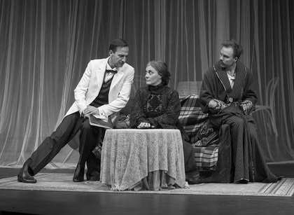 Этот спектакль, очень бережный по отношению к классику, открывает в произведении совершенно новые грани. Здесь и переливы света, и «разомкнутость» пространства, и легкая грусть, и поэзия ушедшего мира русской усадьбы — чеховский импрессионизм, и, конечно, юмор. Собственно сюжет пьесы — аферы с векселями — подается остро, подчас гротескно. Современные ассоциации не подчеркиваются режиссером, они приходят сами собой.